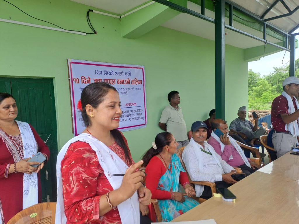 त्यसैगरी विशिष्ट अतिथि तथा मोतिपुर सब डिभिजन वन कार्यालयका वरिष्ठ फरेस्टर बिष्णु थारूले तालिम सफल बनाउनका लागि सहभागीहरूको सक्रियता आवश्यक रहेको उल्लेख गर्दै सामुदायिक वनको संरक्षणका साथै, वन क्षेत्रको प्रयोगबाट समुदायमा रोजगारी सिर्जना गर्नु पनि वन व्यवस्थापनको एउटा पाटो हो। यो तालिमले सहभागीहरूलाई दीर्घकालीन उद्यमशीलता र आर्थिक सशक्तिकरणतर्फ डोर्याउने छ।