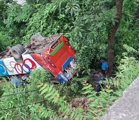 केही बेरअघि आँबुखैरेनी नजिकै दुर्घटना भएको बस भीरमा गएर अड्किएको छ। बस केही मिटरले मर्स्याङ्दीमा खस्नबाट जोगिएको छ।यस स्थानबाट पहिले पनि बस दुर्घटना हुने गरेको थियो । घटनाबारे थप जानकारी आउन बाँकी रहेको छ ।