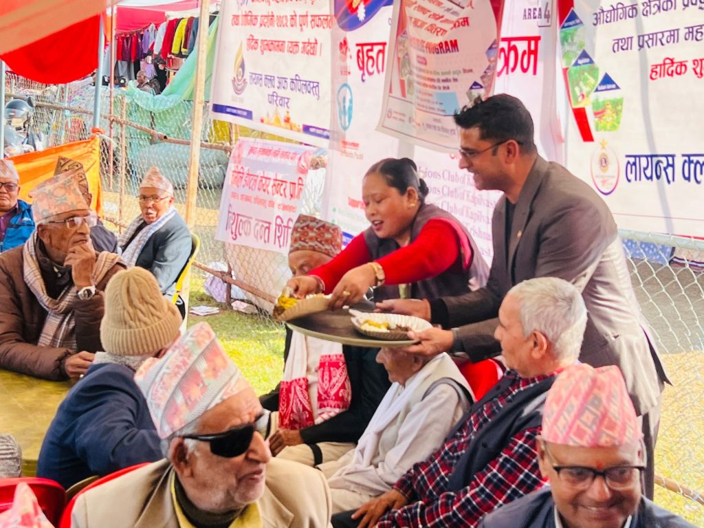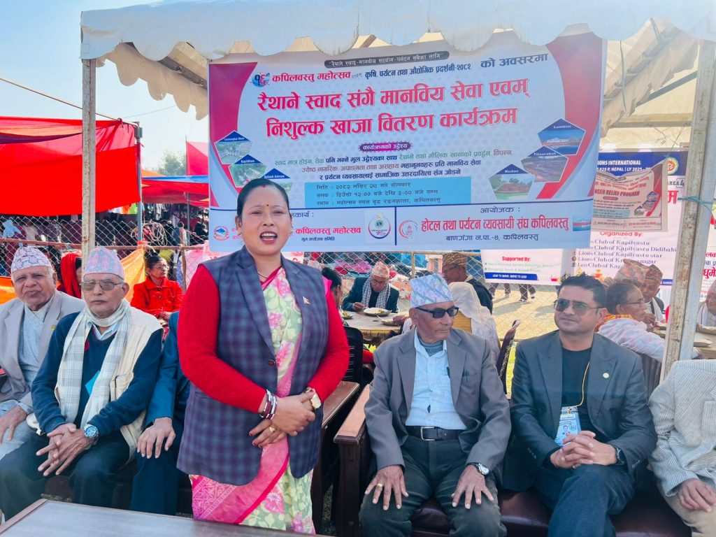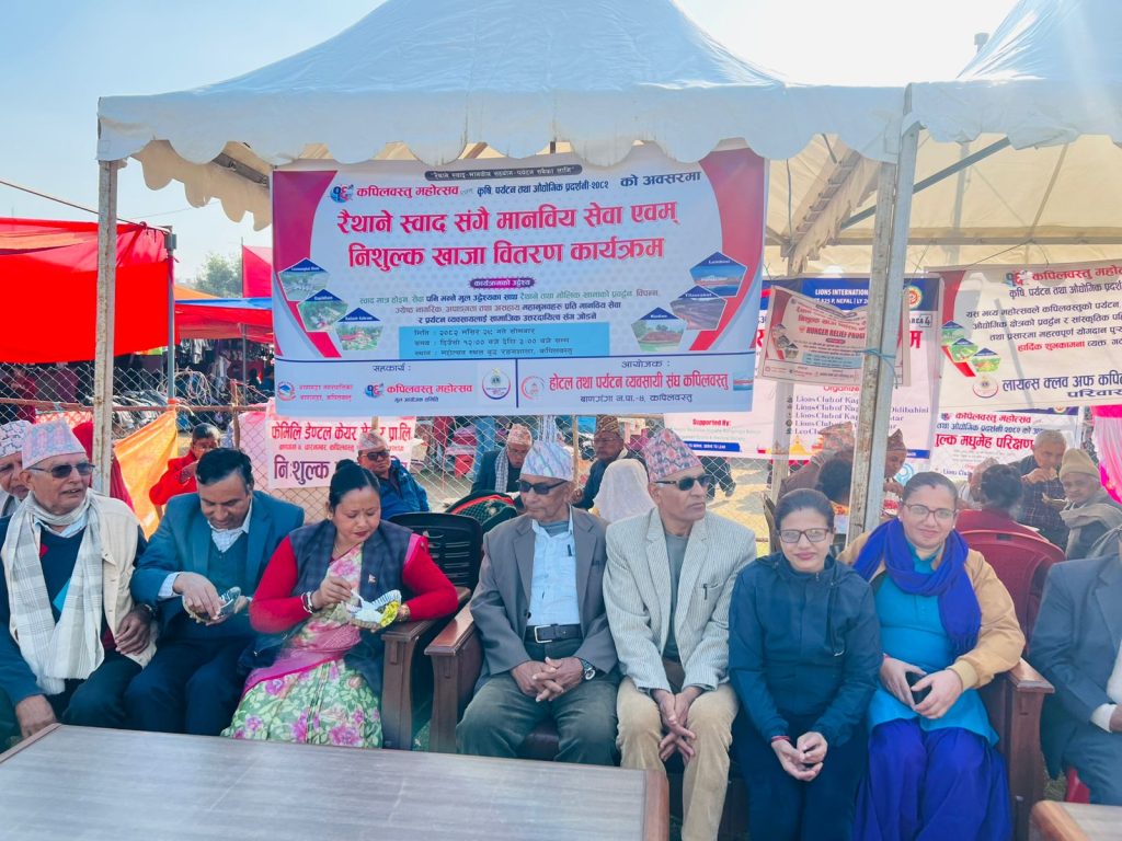 कपिलवस्तु । १६औँ कपिलवस्तु महोत्सव, कृषि, पर्यटन तथा औद्योगिक प्रदर्शनी–२०८२ को अवसरमा स्थानीय स्वादसँगै मानवीय सेवा भन्ने नाराका साथ निःशुल्क खाजा वितरण कार्यक्रम सम्पन्न भएको छ।होटल तथा पर्यटन व्यवसायी संघ कपिलवस्तुको आयोजनामा सम्पन्न कार्यक्रममा महोत्सव अवलोकनमा आएका ज्येष्ठ नागरिक, अपाङ्गता भएका व्यक्ति तथा असहाय वर्गलाई निःशुल्क खाजा वितरण गरिएको हो। साथै कार्यक्रममा स्थानीय तथा मौलिक खानाका परिकारहरूको प्रदर्शनीसमेत गरिएको थियो।